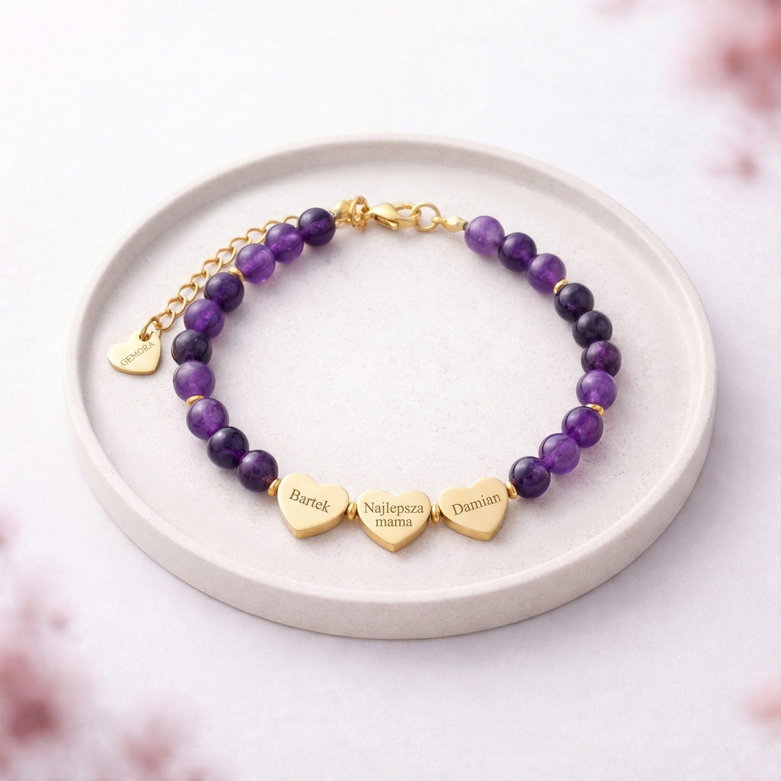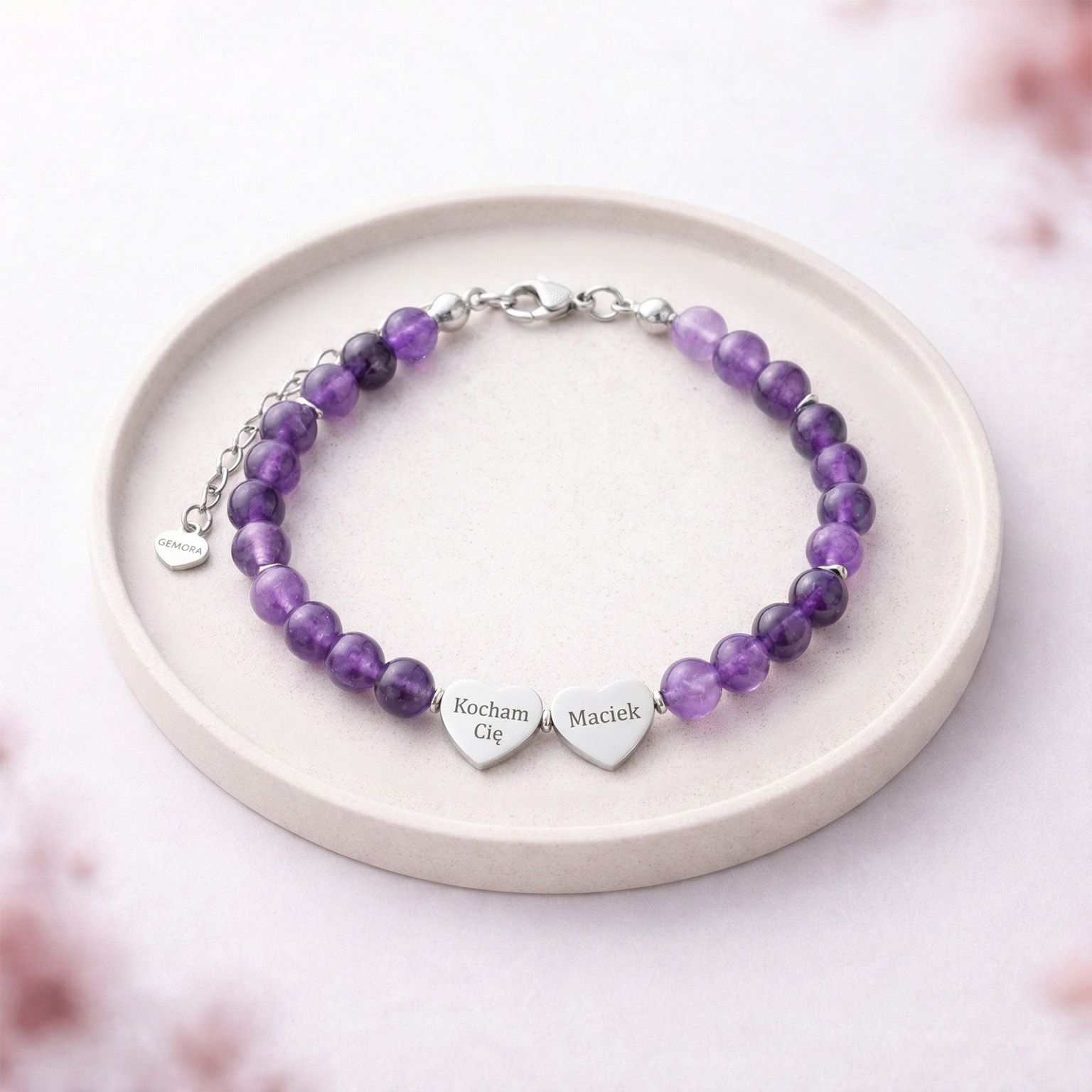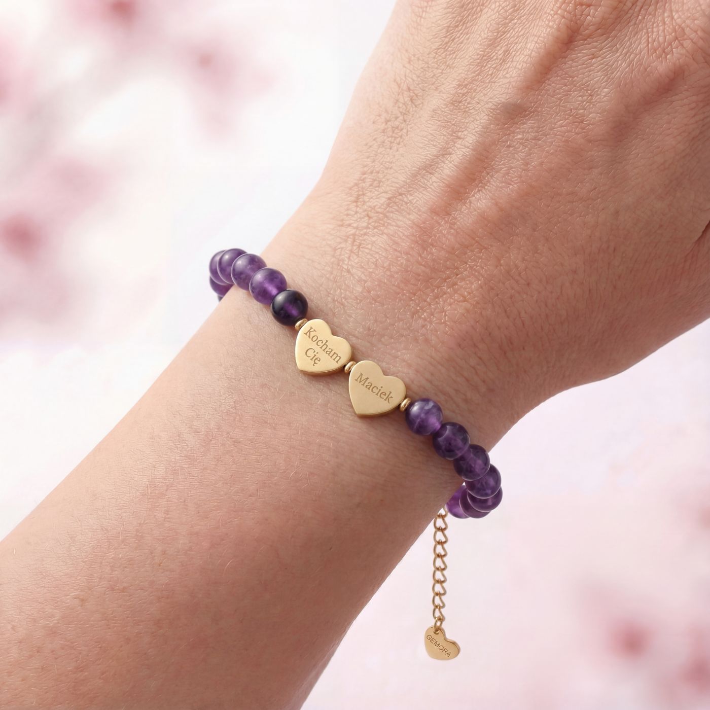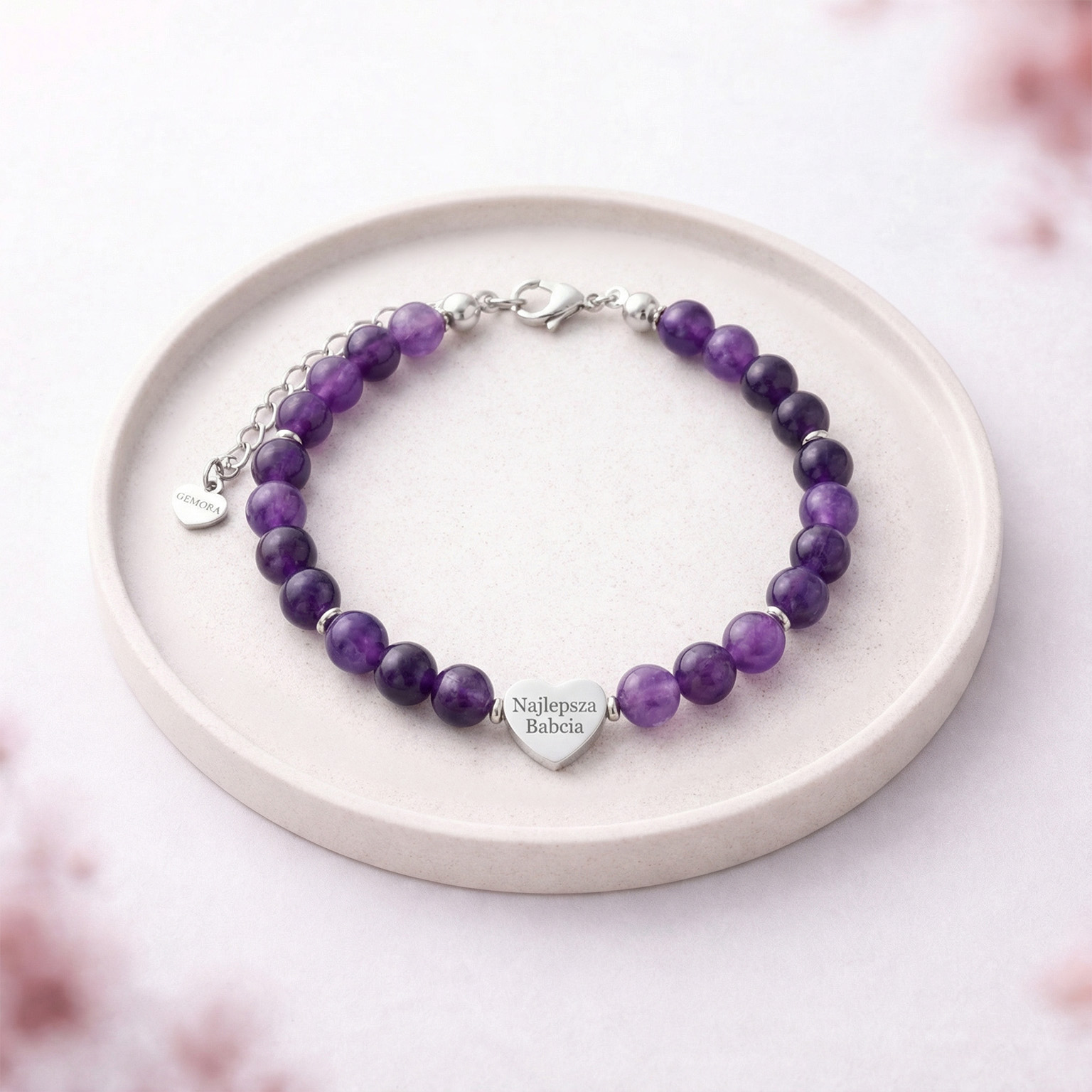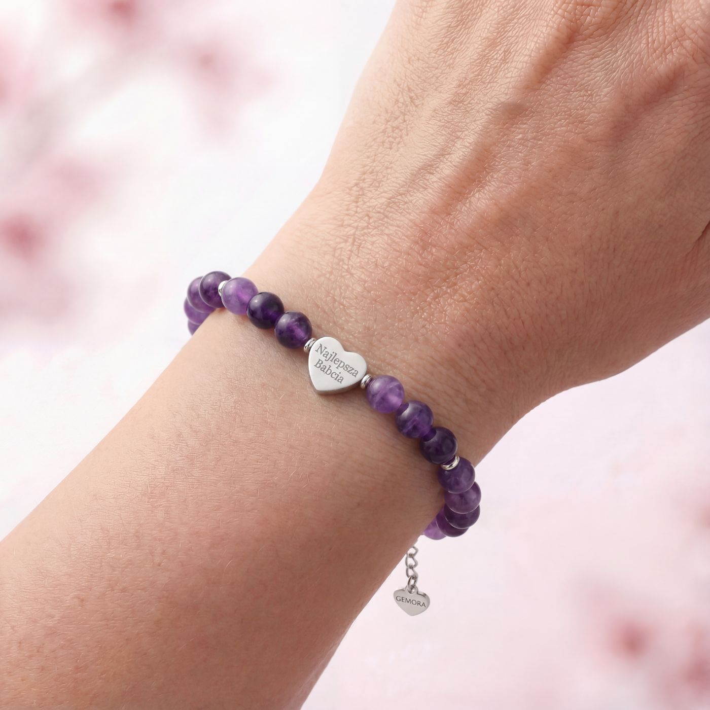 Bransoletka z ametystu staje się jeszcze bardziej wyjątkowa, gdy towarzyszy jej grawer na serduszku. Dzięki temu drobnemu detalowi biżuteria może przypominać o kimś bliskim lub o ważnej myśli, którą chcemy mieć przy sobie. To delikatna bransoleta z grawerem, która sprawdzi się jako biżuteria na prezent – zarówno symbolicznym, jak i codziennym. Personalizacja sprawia, że każda bransoletka z własnym grawerem staje się jedyna w swoim rodzaju, niosąc znaczenie, które pozostaje z Tobą na co dzień.
