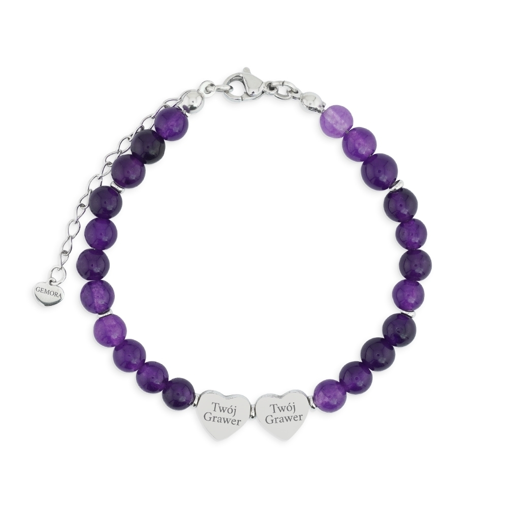 Bransoletka z grawerem – Ametyst, personalizowana (1–3 serca)