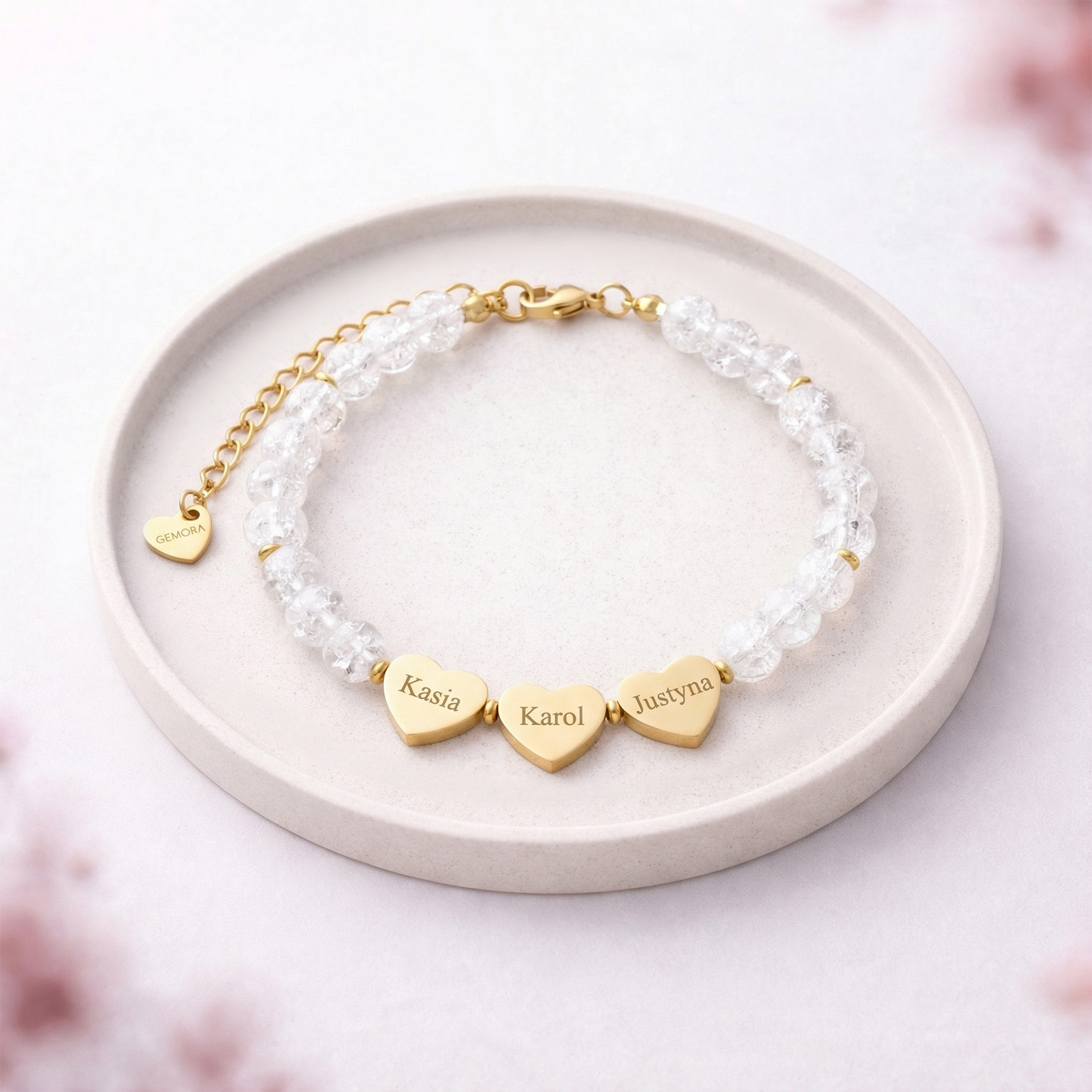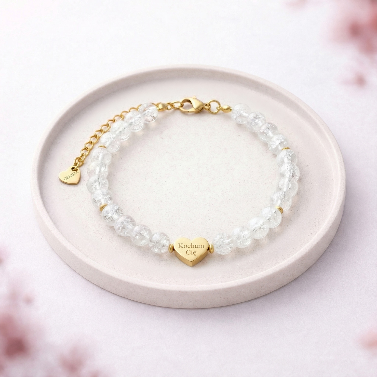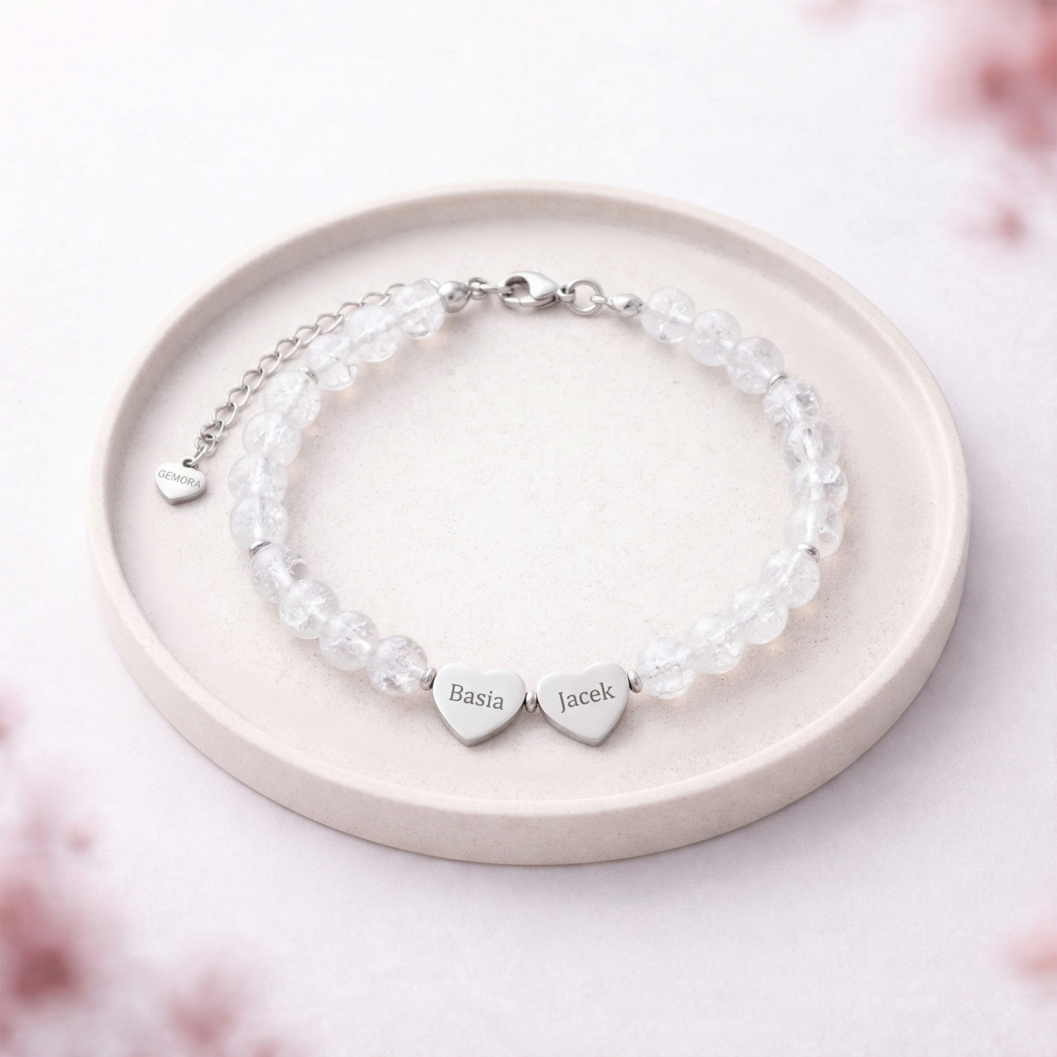 Jeśli szukasz upominku, który będzie miał znaczenie, bransoletka z grawerem na prezent z kryształu górskiego sprawdzi się idealnie. Niewielkie serduszka z grawerem pozwalają zachować blisko imię, inicjały lub symbol ważnej relacji. To subtelna bransoletka personalizowana, która łączy jasny blask kamieni z indywidualnym przesłaniem. Delikatna, codzienna i pełna emocji - jedna z tych spersonalizowanych bransoletek, które zostają na długo.