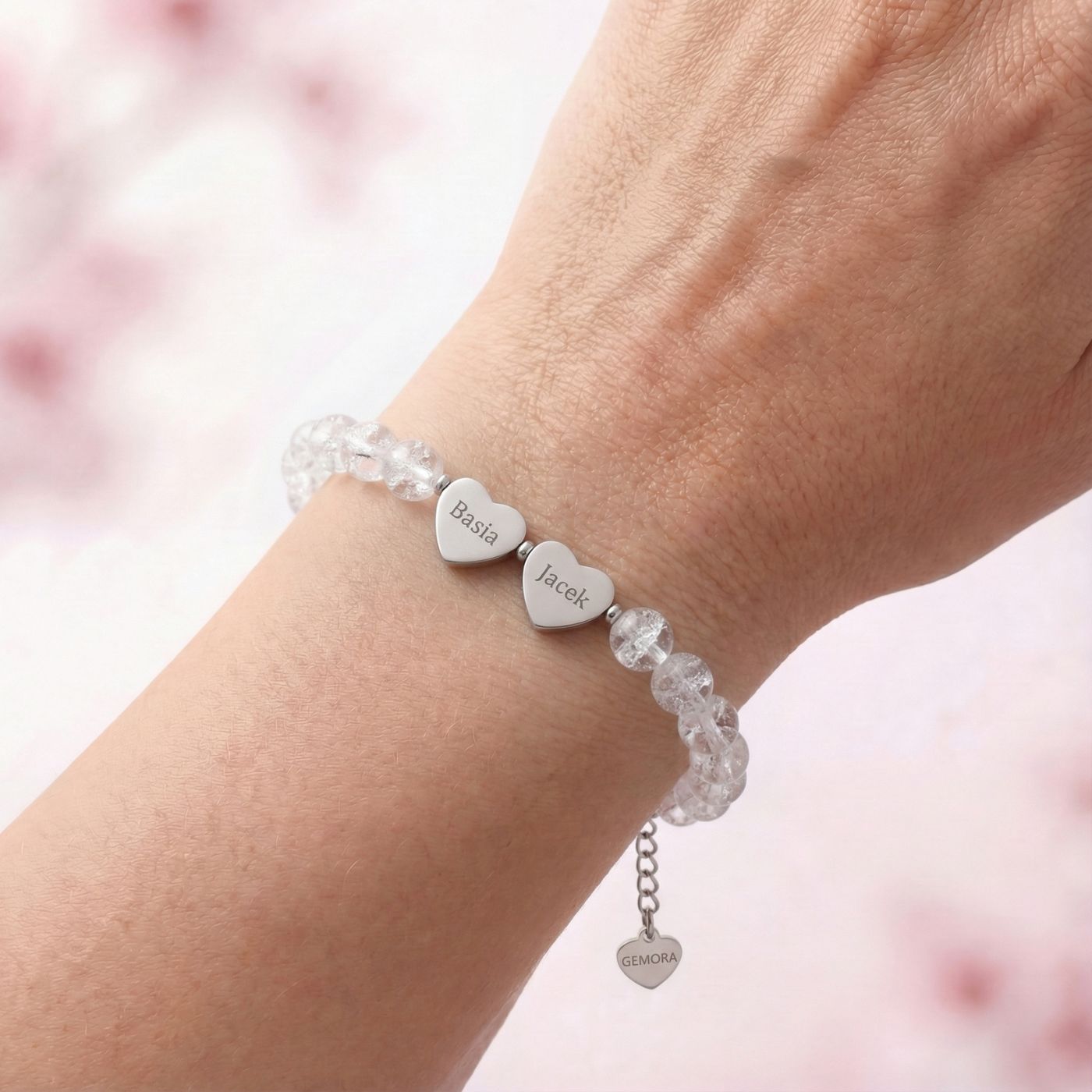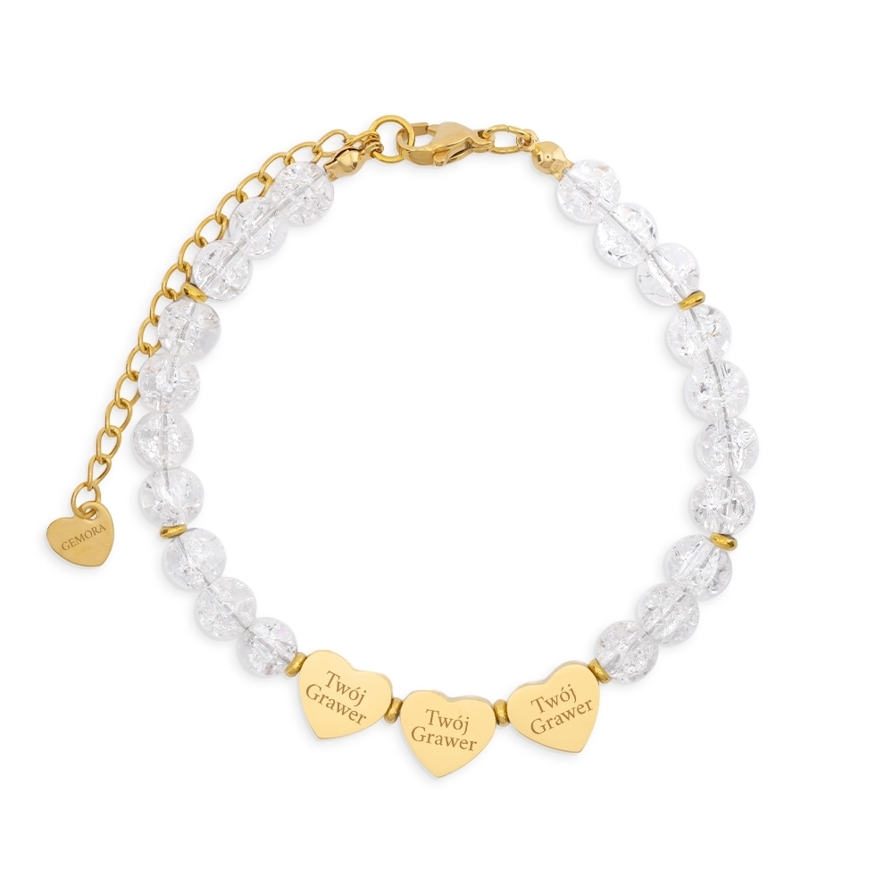Bransoletka z grawerem – Kryształ Górski, personalizowana (1–3 serca)