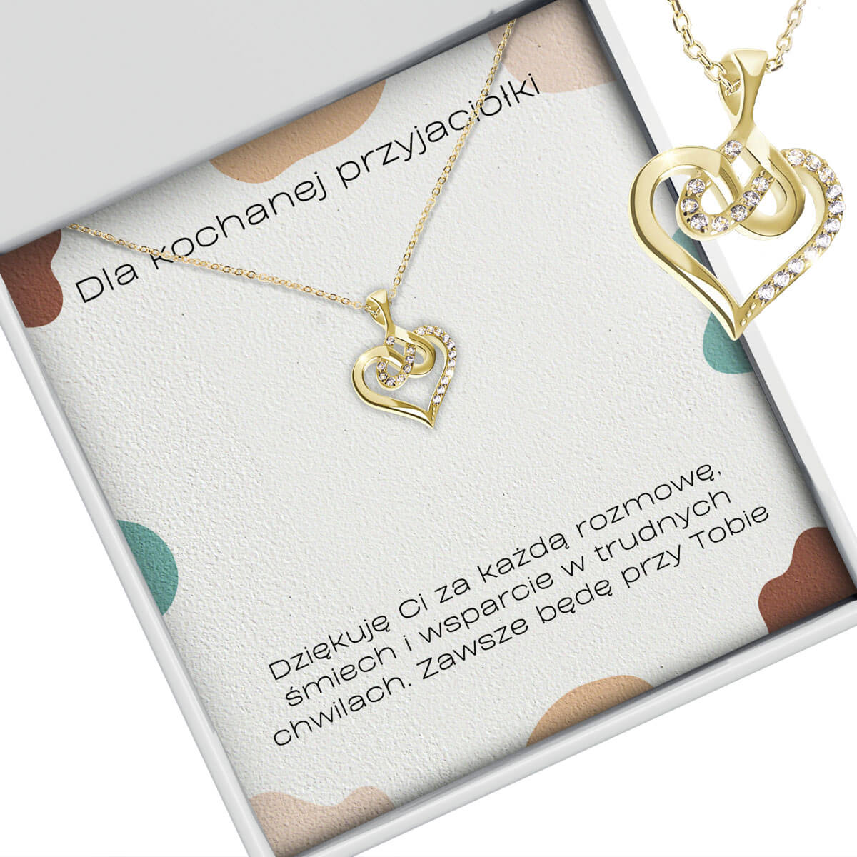 Naszyjnik Serce Nieskończoności to piękny sposób, by powiedzieć: „dziękuję, że jesteś”. Symbol splecionego serca i znaku nieskończoności to przypomnienie, że prawdziwa przyjaźń trwa niezależnie od czasu i odległości.